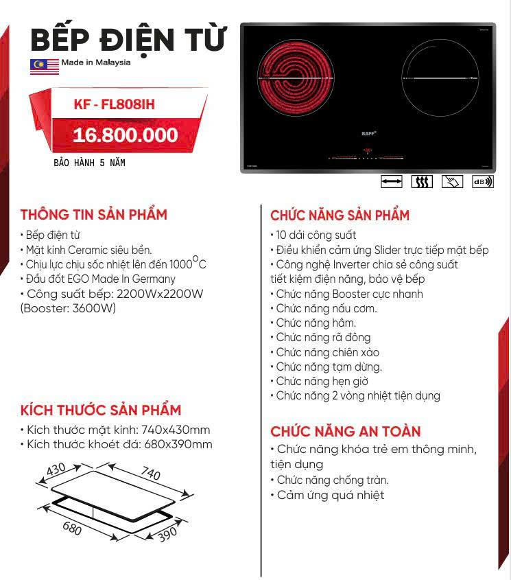 Với tất cả những ưu điểm vượt trội kể trên, Bếp Điện Từ Kaff KF-FL808IH xứng đáng là lựa chọn hàng đầu cho mọi gia đình đang tìm kiếm một chiếc bếp kết hợp điện từ chất lượng cao, an toàn, đa năng và tiết kiệm năng lượng.