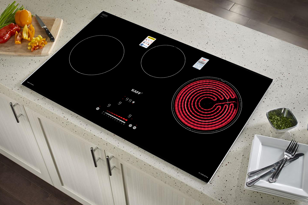 Bếp được thiết kế với 2 vùng từ và 1 vùng điện, đáp ứng mọi nhu cầu nấu nướng: