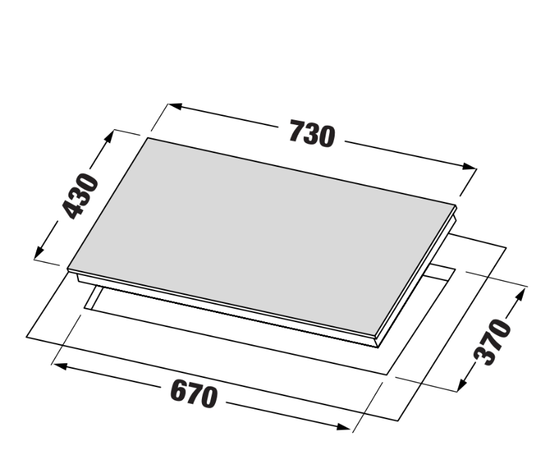 - Kích thước khoét đá: 670×370 mm