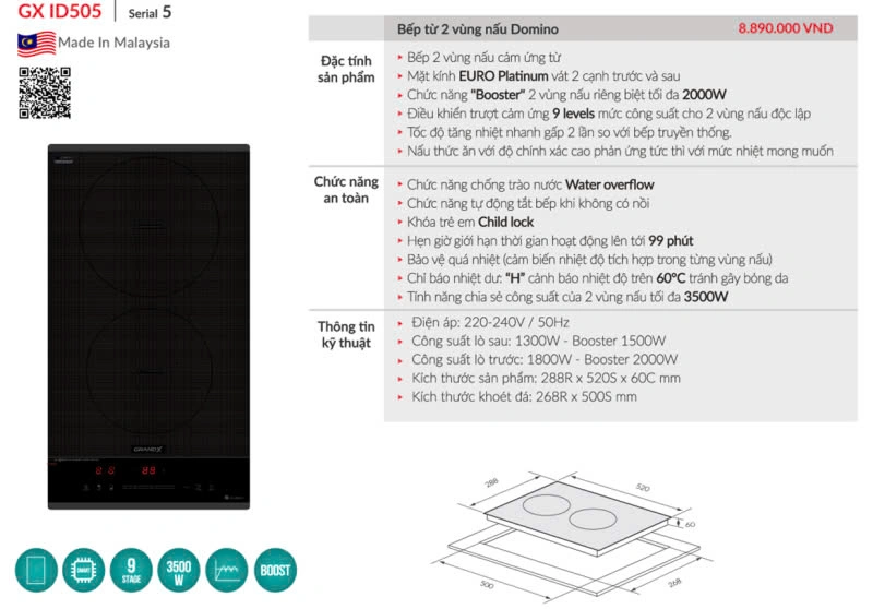 • Tên sản phẩm: Bếp từ GrandX GX ID505
