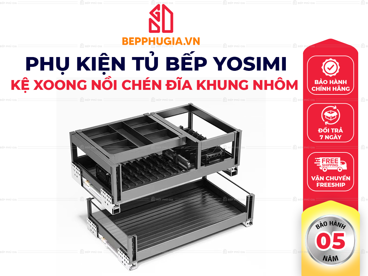 Yosimi luôn tiên phong trong việc ứng dụng những công nghệ tiên tiến và lựa chọn vật liệu chất lượng cao nhất để tạo ra những sản phẩm phụ kiện tủ bếp không chỉ bền bỉ mà còn mang đậm tính thẩm mỹ. Bộ Kệ Xoong Nồi Chén Đĩa Khung Nhôm Yosimi của chúng tôi là minh chứng cho sự kết hợp hoàn hảo giữa thiết kế thông minh, công năng ưu việt và vẻ đẹp hiện đại, hứa hẹn sẽ trở thành trợ thủ đắc lực trong việc quản lý không gian bếp của bạn.