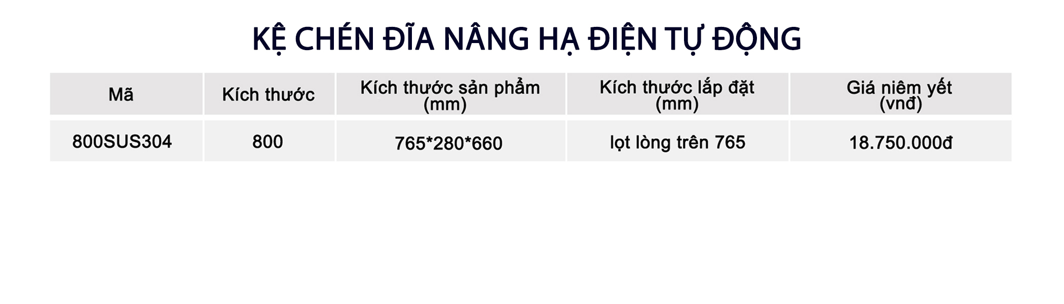 Kệ Chén Đĩa Nâng Hạ Điện Tự Động Yosimi 765x280x660