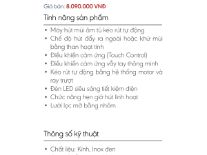 - Công nghệ Không Chạm (Gesture Control): Máy được trang bị tính năng vẫy tay tự động tiên tiến nhất. Thay vì phải chạm tay trực tiếp vào bảng điều khiển khi tay đang dính dầu mỡ, bạn chỉ cần thực hiện thao tác vẫy tay đơn giản để bật/tắt hoặc điều chỉnh cấp độ hút.