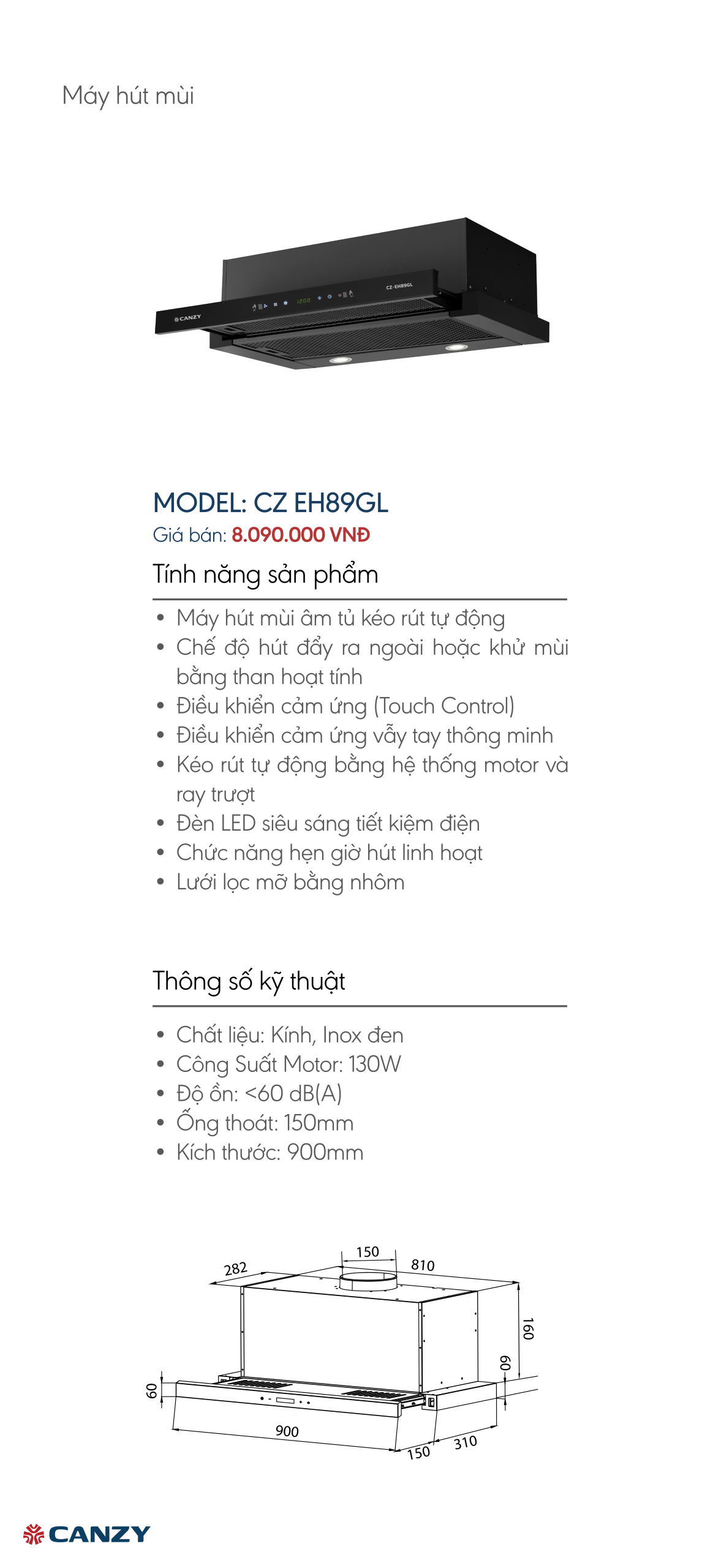 Máy Hút Mùi Canzy CZ EH85GL – Tinh Gọn Không Gian, Đỉnh Cao Công Nghệ
