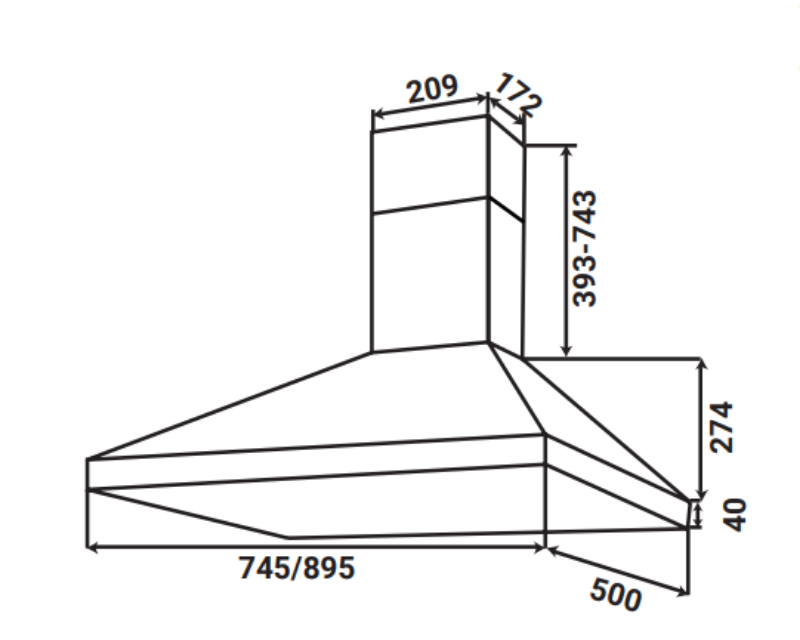 - Ốp ống khói inox 209R x 172S x 393-743C mm