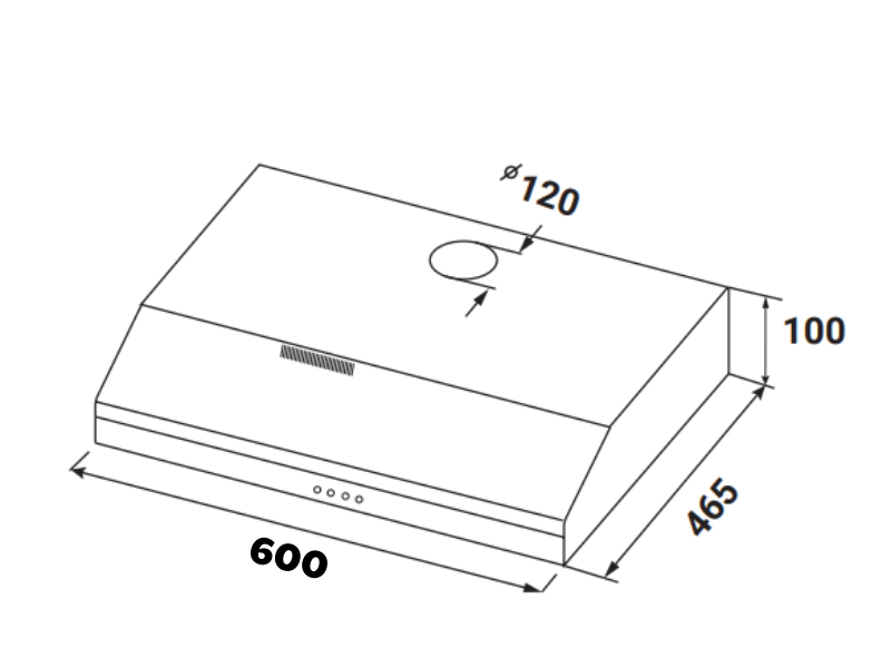 - Kích thước sản phẩm: 600R x 465S x 100C mm (Rộng x Sâu x Cao), thiết kế nhỏ gọn, dễ dàng lắp đặt.